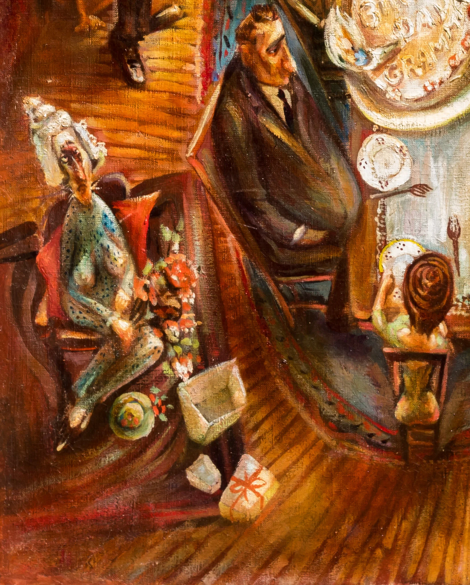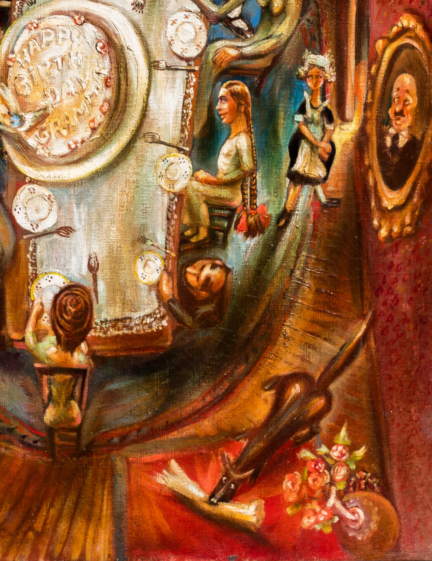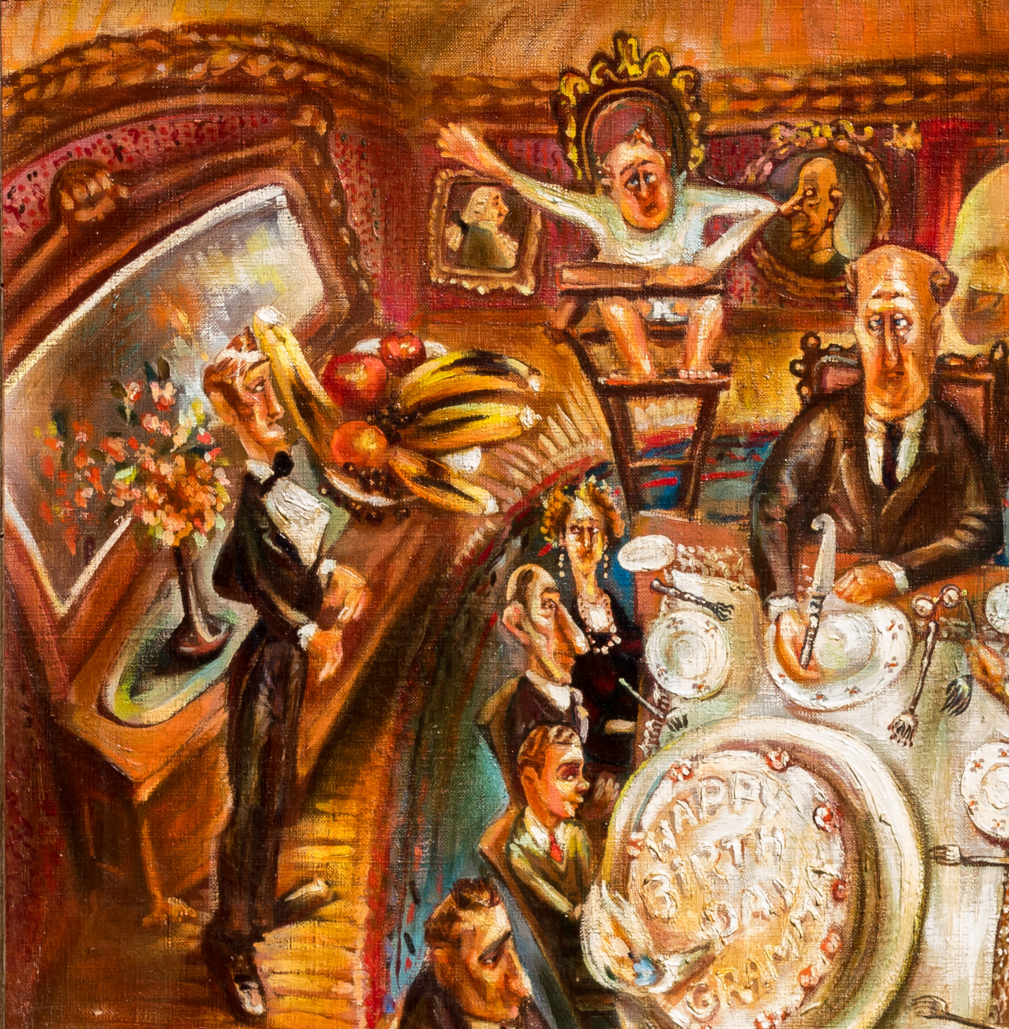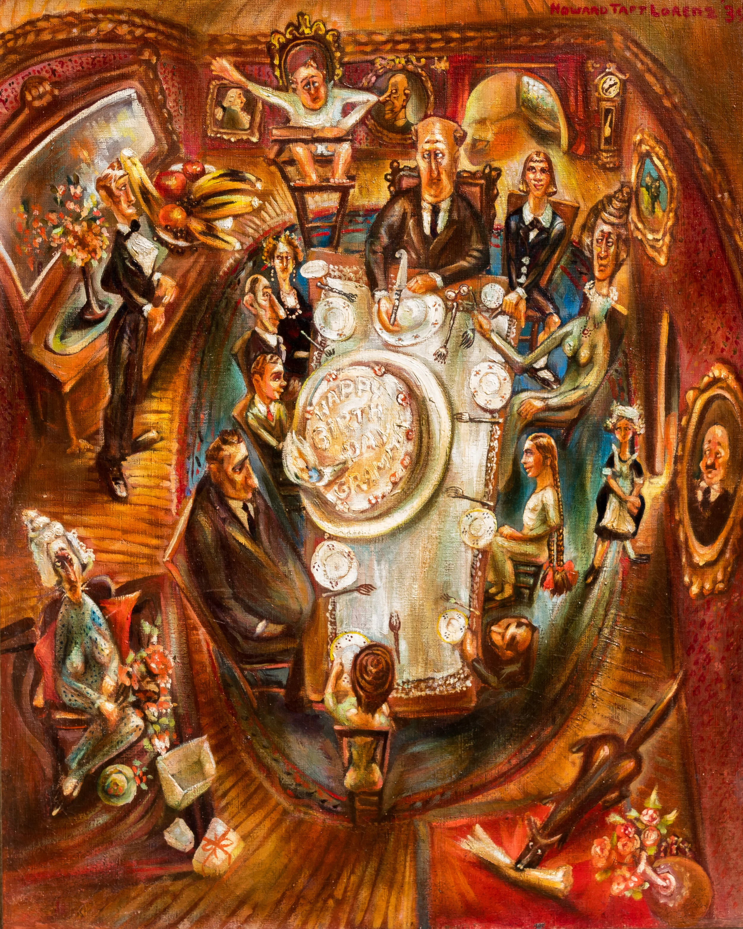 There are 10 paintings by Mr. Lorenz in the Smithsonian Museum of Art Collection which are represented with photographs on Howard Taft Lorenz’s Smithsonian profile (link included). Most notably, one of the paintings from the collection, titled " Dismissal", was featured as the cover of the Smithsonian Magazine, October, 1979. The painting immortalized his friend and fellow WPA artist, Fred Becker, receiving his "pink slip" from the New York City WPA in 1935 (cover image above). Unfortunately, Mr. Lorenz died young under desperate circumstances and did not live to see one of his paintings grace the cover of the Smithsonian Magazine. The quality and recognition of his work is rather remarkable since he only painted for 5 years of his life, during the Federal Arts Project( 1935-1940 ). This rare and exceptional Lorenz painting titled "Happy Birthday Gramma" is featured in the Lorenz Biographical Essay below. ( CLICK BELOW IN RED TO VIEW).